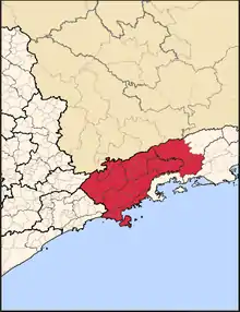 Le Brésil joue alors une autre carte, avec des projets ferroviaires audacieux, qui finissent par se concrétiser. Décidée en 1852, la ligne ferroviaire de Mauá est inaugurée en 1854, dans l'État de Rio de Janeiro, pour relier le port de Mauá au quartier de Fragoso (Magé) sous l'impulsion de l'entrepreneur Irineu Evangelista de Sousa. Mais surtout en 1859, le banquier Barão de Mauá[14] convainc le gouvernement de débuter une ligne ferroviaire de 79 kilomètres reliant la plaine caféière de São Paulo au port de Santos, en traversant la « cordillère de la mer », avec des passages à plus de 800 mètres d’altitude et des pentes de près de 10 %. Pendant sa construction, le port de Santos est agrandi. Le négociant brésilien Lacerda, fondé dans les années 1860, y deviendra rapidement le plus gros exportateur[15], avec 0,48 million de sacs par an, devant deux maisons allemandes, Zerrener Bülow (0,45 million de sacs) et Berla Cotrim (0,24 million de sacs)[15]