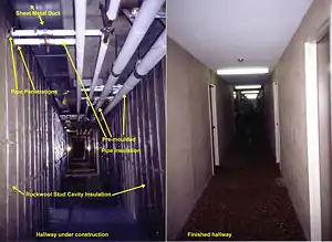 La tuyauterie peut également émettre des bruits mécaniques. Dans de telles circonstances, la réduction du bruit de la paroi de la canalisation peut être obtenue par une isolation acoustique intégrant un écran anti-bruit.