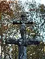 Le calvaire supporte un groupe formé des trois croix, de la Pietà et des Saintes femmes, s'élevant au-dessus d'un fût en forme de tronc d'arbre avec base polygonale[1].