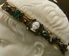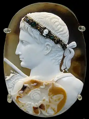 Camée d'Auguste, l'un de ceux attribués par certains à Dioscoride, avec un cadre médiéval. Trésor de l'abbaye de Saint-Denis.