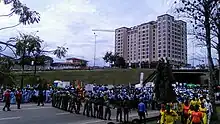 Le 10 avril 2008, l'Assemblée nationale adopte le projet de loi sur la révision constitutionnelle avec 157 voix pour, 5 contre et 15 non votants. Ce projet adopté est très critiqué[31] par les partis politiques de l'opposition puisqu'il permet à Paul Biya de prétendre à un quatrième mandat à la fin de son mandat en 2011.