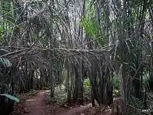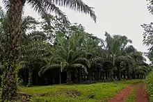La végétation camerounaise est diversifiée et peut être divisée en deux grandes zones : la zone tropicale et la zone équatoriale[40]. Elle souffre d'une importante déforestation, ayant conduit à un appauvrissement de la biodiversité et à d'importantes émissions de gaz à effet de serre.