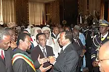 Le président Paul Biya en tête-à-tête avec l'opposant Jean-Jacques Ekindi.
