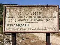 - Les maquis du Malay : maquis Vallier, FTP, section atterrissages-parachutages ou SAP, du camp Lafayette[11].