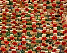 Cette allégorie du coquelicot découle d'un poème, écrit le 3 mai 1915 par le lieutenant-colonel John McCrae, un médecin du Corps de santé royal canadien qui fut témoin de la terrible seconde bataille d'Ypres[2]. Il s'intitule In Flanders Fields (Au champ d'honneur). En fait, les coquelicots fleurissaient sur le bord des tranchées et sur les tombes des soldats (phénomènes remarqués dès les guerres napoléoniennes)[3], et leur couleur rouge était un symbole approprié pour le bain de sang de la guerre de tranchées. En 1918, Moina Michael, universitaire membre de la yWCA, découvre ce poème et promeut l'usage des coquelicots comme symbole de mémoire. Cette pratique est adoptée par l'American Legion en 1920 lors d'un congrès auquel participe Anna E. Guerin, membre du YMCA en France, qui propose de vendre, à l'occasion de l'anniversaire de l'Armistice, des coquelicots en tissus faits à la main, afin de recueillir de l'argent pour les orphelins de guerre. En 1921, une délégation de veuves françaises rend visite au maréchal britannique Douglas Haig, fondateur de la Royal British Legion, et le convainc de vendre ces coquelicots pour amasser des fonds pour les anciens combattants blessés et au chômage[2]. Dès 1922, les divers pays qui ont adopté ce symbole entreprennent de fabriquer les coquelicots en papier chez eux. La tradition se poursuit depuis de vendre ces fleurs le jour du Souvenir[4].