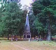 - Près de la chapelle, sur ordre du général Devolant, un obélisque en granit à quatre côtés avec des plaques de métal fut érigé: « Avec la généreuse intercession de l'impératrice Marie, ce canal a été commencé en 1799 à la demande de son époux, l'empereur Paul Ier, et a été exécuté sous son fils, l'empereur Alexandre Ier, par l'ordre duquel ce monument fut érigé. », « Петрову мысль Мария свершила », « Maria a réalisé l'idée de Petrov ».