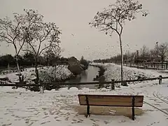 Le paysages se compose aussi d’autres espèces importées comme le cyprès, le peuplier, le platane, le bouleau et le pin parasol, tous visibles le long du canal.