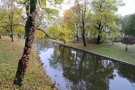 Le canal repose sur les douves de Riga, larges de 90 m, qui constituaient un élément important de la défense militaire de la ville au Moyen Âge. Le canal prend son aspect actuel à partir de 1857, lorsque les ouvrages de fortification sont progressivement démolis : le fossé de fortification de la ville est relié à l'un des fossés de fortification de la citadelle, il est partiellement comblé et les berges sont renforcées par des planches de chêne[3]. Les courbes du canal ressemblent encore à peu près aux contours des anciennes fortifications.