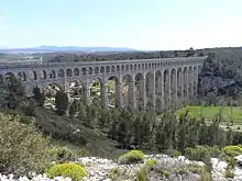 - L'aqueduc de Saint-Pierre (Marseille 12e), achevé en 1851 : 383 mètres de longueur, 92 arches en plein cintre de 11,20 mètres de hauteur maximum[7] ; abandonné, et récemment tronqué pour laisser passer une voie ferrée.