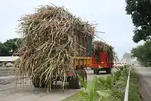 Cannes à sucre coupées prêtes à être transportées à la raffinerie. Cannes à sucre coupées prêtes à être transportées à la raffinerie.