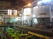 La canne récoltée, sous forme de tronçons de tiges, est transportée dans une unité de transformation, le plus souvent une sucrerie, pour être traitée. Les tiges sont broyées dans un moulin et produisent un liquide sucré, le jus de canne ou vesou, ainsi qu'un résidu fibreux, la bagasse. Le vesou fait l'objet d'une évaporation, conduisant au sirop, lequel est clarifié puis concentré pour en extraire le sucre cristallisé brut, le sucre de canne. Celle-ci donne le sucre roux, qui sera ensuite éventuellement transformé en sucre blanc dans une raffinerie.