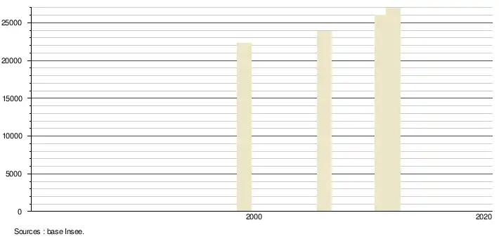 - Population municipale légale en vigueur au 1er janvier 2024, millésimée 2021, définie dans les limites territoriales en vigueur au 1er janvier 2023, date de référence statistique : 1er janvier 2021.