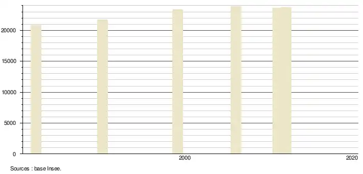 - Population municipale légale en vigueur au 1er janvier 2024, millésimée 2021, définie dans les limites territoriales en vigueur au 1er janvier 2023, date de référence statistique : 1er janvier 2021.