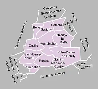 Contrairement à beaucoup d'autres cantons, le canton de Cerisy-la-Salle n'incluait aucune commune supprimée depuis la création des communes sous la Révolution[9].