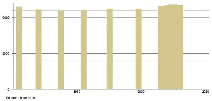 - Population municipale légale en vigueur au , millésimée 2012, définie dans les limites territoriales en vigueur au , date de référence statistique : .