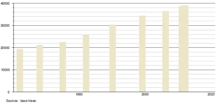 - Population municipale légale en vigueur au 1er janvier 2024, millésimée 2021, définie dans les limites territoriales en vigueur au 1er janvier 2023, date de référence statistique : 1er janvier 2021.