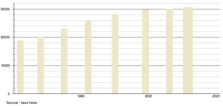 - Population municipale légale en vigueur au 1er janvier 2024, millésimée 2021, définie dans les limites territoriales en vigueur au 1er janvier 2023, date de référence statistique : 1er janvier 2021.
