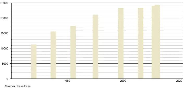 - Population municipale légale en vigueur au 1er janvier 2024, millésimée 2021, définie dans les limites territoriales en vigueur au 1er janvier 2023, date de référence statistique : 1er janvier 2021.