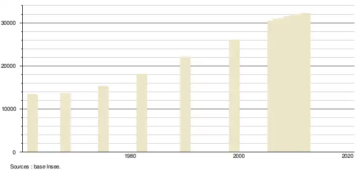 - Population municipale légale en vigueur au 1er janvier 2024, millésimée 2021, définie dans les limites territoriales en vigueur au 1er janvier 2023, date de référence statistique : 1er janvier 2021.
