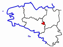 |   Situation du canton de Guer dans le département du Morbihan. | |