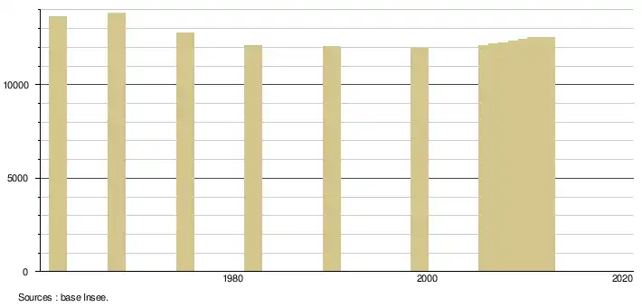 - Population municipale légale en vigueur au , millésimée 2012, définie dans les limites territoriales en vigueur au , date de référence statistique : .