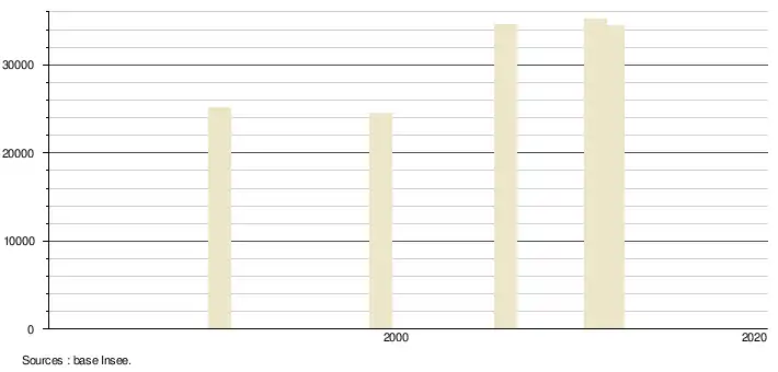(Sources : Base Insee, population sans doubles comptes à partir de 1962[5] puis population municipale à partir de 2006[6])