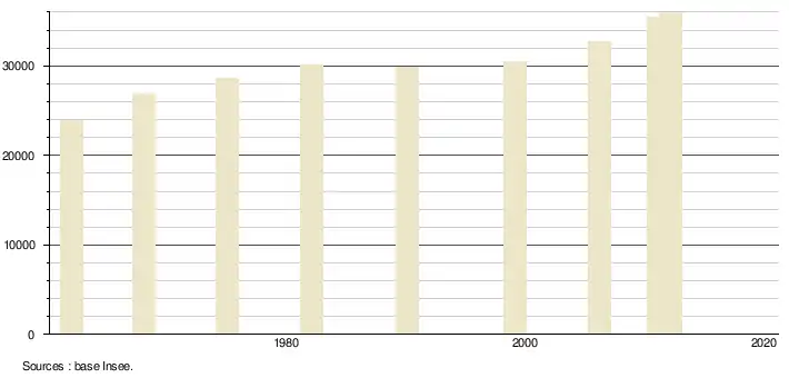 - Population municipale légale en vigueur au 1er janvier 2024, millésimée 2021, définie dans les limites territoriales en vigueur au 1er janvier 2023, date de référence statistique : 1er janvier 2021.