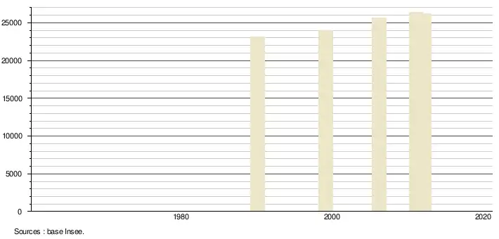 - Population municipale légale en vigueur au 1er janvier 2024, millésimée 2021, définie dans les limites territoriales en vigueur au 1er janvier 2023, date de référence statistique : 1er janvier 2021.
