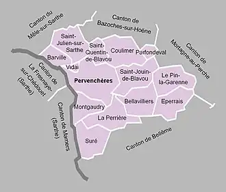 À la suite du redécoupage des cantons pour 2015, les communes d'Eperrais, La Perrière et Suré sont rattachées au canton de Ceton, les communes de Bellavilliers, Coulimer, Montgaudry, Parfondeval, Pervenchères, Le Pin-la-Garenne et Saint-Jouin-de-Blavou à celui de Mortagne-au-Perche et les communes de Barville, Saint-Julien-sur-Sarthe, Saint-Quentin-de-Blavou et Vidai à celui de Radon.
