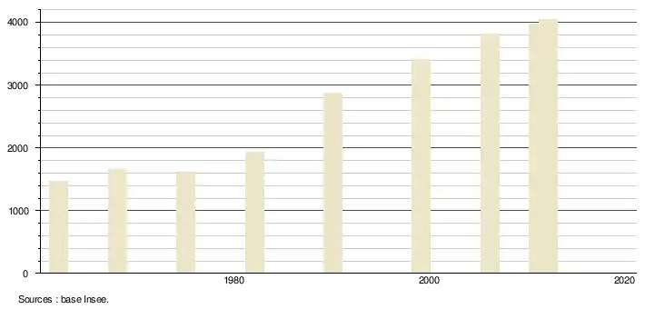 (Sources : Base Insee, population sans doubles comptes à partir de 1962[7] puis population municipale à partir de 2006[8])