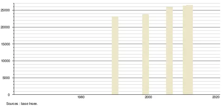 - Population municipale légale en vigueur au 1er janvier 2024, millésimée 2021, définie dans les limites territoriales en vigueur au 1er janvier 2023, date de référence statistique : 1er janvier 2021.