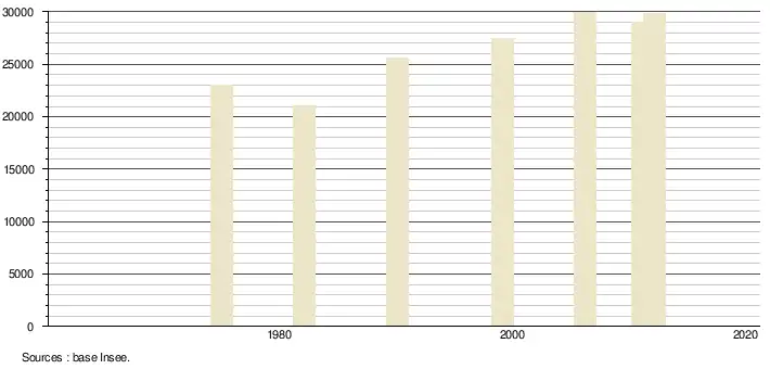 - Population municipale légale en vigueur au 1er janvier 2024, millésimée 2021, définie dans les limites territoriales en vigueur au 1er janvier 2023, date de référence statistique : 1er janvier 2021.