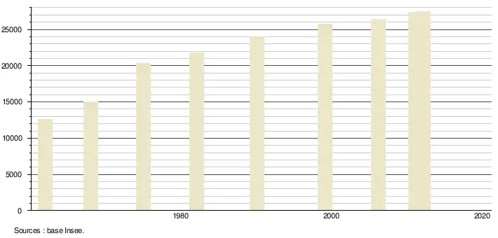 - Population municipale légale en vigueur au 1er janvier 2024, millésimée 2021, définie dans les limites territoriales en vigueur au 1er janvier 2023, date de référence statistique : 1er janvier 2021.