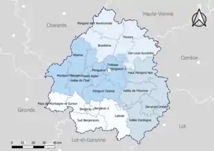 canton de Beaumont-du-Périgord - canton de Bergerac-1 - canton de Bergerac-2 - canton du Buisson-de-Cadouin - canton d'Eymet - canton de la Force - canton d'Issigeac - canton de Lalinde - canton de Monpazier - canton de Sainte-Alvère - canton de Sigoulès - canton de Vélines - canton de Villamblard - canton de Villefranche-de-Lonchat - Arrondissement de Nontron (8 cantons - sous-préfecture : Nontron) :