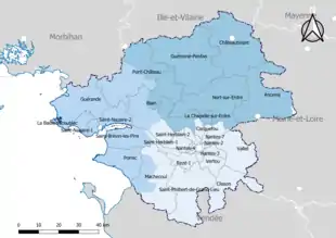 | 3 | Blain | Blain | 55 746 | 14 | Blain, Bouée, Bouvron, Campbon, La Chapelle-Launay, Cordemais, Le Gâvre, Lavau-sur-Loire, Malville, Prinquiau, Quilly, Saint-Étienne-de-Montluc, Savenay, Le Temple-de-Bretagne. |