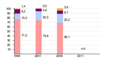 La langue maternelle est le français chez 20,2 % des habitants, l'anglais chez 69,1 % et les deux langues chez 6,7 % alors que 3,9 % sont allophones[4]. Les deux langues officielles[note 1] sont comprises par 39,2 % de la population alors que 1,1 % des habitants sont unilingues francophones et que 59,6 % sont unilingues anglophones[4]. Le français est parlé à la maison par 9,0 % des gens, l'anglais par 86,0 %, les deux langues officielles par 3,4 % et une langue non officielle seule par 1,1 %[4]. Le français est utilisé au travail par 16,0 % des travailleurs et l'anglais par 82,7[5].