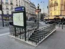 La station dispose de deux accès, chacun constitué d'un escalier fixe agrémenté d'une balustrade de type Dervaux :