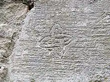 Signe symbolique de l'« union » (l'union fait la force) sur une paroi de couloir conduisant au baptistère Saint-Jean-Baptiste de Carluc.