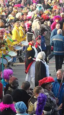 - les bandes : les carnavaleux défilent dans les rues derrière la musique (la « clique »), conduite par un tambour-major.