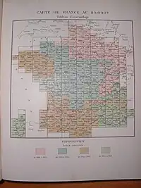 - Réduction au 1/100 000 et colorisation en 5 couleurs : carte du service vicinal ou dite du Ministère de l'intérieur ;