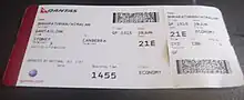 Carte d'embarquement moderne pour un vol intérieur de la compagnie Qantas.
