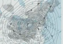 En 1838, William Reid publie sa controversée Law of Storms décrivant le comportement des dépressions[10]. Son ouvrage divise la communauté scientifique durant dix années. En 1841, l'américain Elias Loomis est le premier à suggérer la présence de fronts pour expliquer la météo mais ce n'est qu'après la Première Guerre mondiale que l'école norvégienne de météorologie développera ce concept[11]. Ce n'est que plus tard que la recherche en météorologie et le développement des ordinateurs a permis de passer d'une interprétation empirique de l'analyse des cartes météorologiques à une autre quantifiable avec les équations primitives atmosphériques.