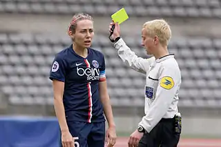 En football, le carton jaune est un avertissement délivré à un joueur par l'arbitre, qui brandit alors au vu de tous un morceau de plastique – de 102 × 76 mm en général.