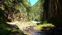 Cette cascade est la plus connue du plateau avec un seul saut de 36 mètres de haut. La cascade est située entre deux murs de porphyre verticaux où pousse la mousse[2].
