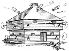La langue allemande emploie toujours le mot blockhaus pour désigner une maison en rondin, une fuste.