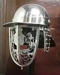 Les casques de meilleurs qualités ayant bénéficié de ce traitement auraient souvent vu leur apparence sombre soulagée par l’utilisation de nombreuses têtes de rivets dorées. Certains des casques les plus flamboyants ont été fabriqués pour les hussards à ailes polonaises, avec des crêtes en métal et agrandis, de forme décorative, les naseaux n'étant pas rares[8]. Un certain nombre de casques existants sont dotés de supports de panache tubulaires, ce qui, pris avec la preuve d'illustrations contemporaines, indique l'utilisation de panaches de plumes[2].