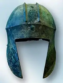 Le casque de type illyrien est utilisé par les anciens Grecs[9], Étrusques[10], Scythes[11], et devient populaire auprès des Illyriens qui l'adoptent plus tard[9],[12]. Une variante du casque se propage en Italie en raison de son apparition sur des reliefs en ivoire et sur un bol en argent de la tombe Bernardini à Palestrina[6]. Le casque devient obsolète dans la plupart des régions de la Grèce au début du Ve siècle av. J.-C. Son utilisation en Illyrie a pris fin au IVe siècle av. J.-C.[13].