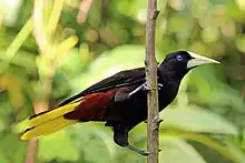 - Psarocolius decumanus insularis (Dalmas, 1900) de Trinité-et-Tobago, il a le bord des ailes et le dos plus brun ;.jpg.webp) Psarocolius decumanus insularis Psarocolius decumanus insularis