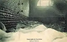 Brancardiers conduisant les corps à la Chapelle. Brancardiers conduisant les corps à la Chapelle.