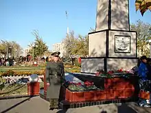 Un mémorial a été érigé à Baïkonour et les techniciens de l'Agence spatiale fédérale russe s'y recueillent avant chaque lancement.